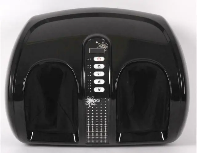 Sooth those aching feet with this deep kneading foot massager with infrared heat. Place feet in the foot beds then sit back and enjoy the comfort of 3-dimensional massage: rollers with pressure nodes target reflex points on the sole of foot, kneading on the sides and all around infrared heat. Promotes blood circulation, releases tension and helps to relieve stress. Your feet will thank you over and over again. Features and Functions. - Elegant and ergonomic design. - Infrared for heating treatment. - Four groups of massager heads for comfortable kneading experience. - Foot rollers with pressure nodes target vital reflex points on your soles. - Replicates the push and release technique used by professional reflexologists. - Stimulates blood circulation, relieves tension and reduces stress. - Detachable fabric covering for easy cleaning. - Auto 15-minutes timer. - Two infrared heat settings. - Two massage programs. - Five massage intensity settings. NOT equipped with infrared heat just infrared light.