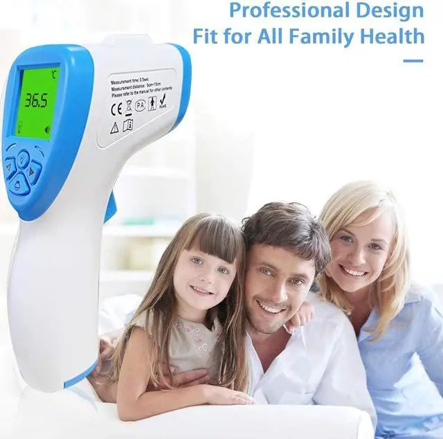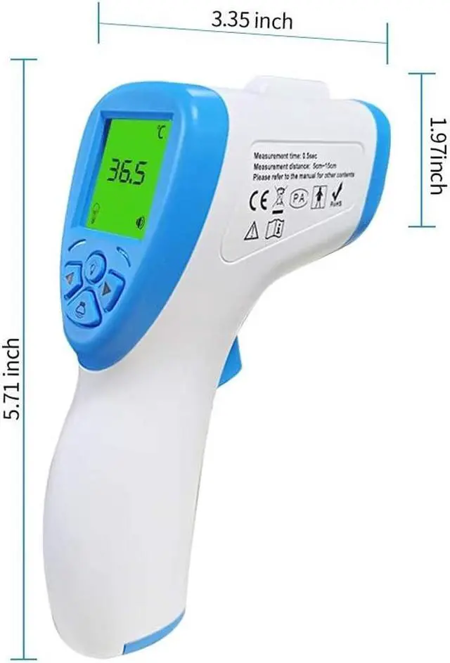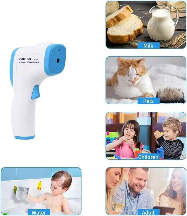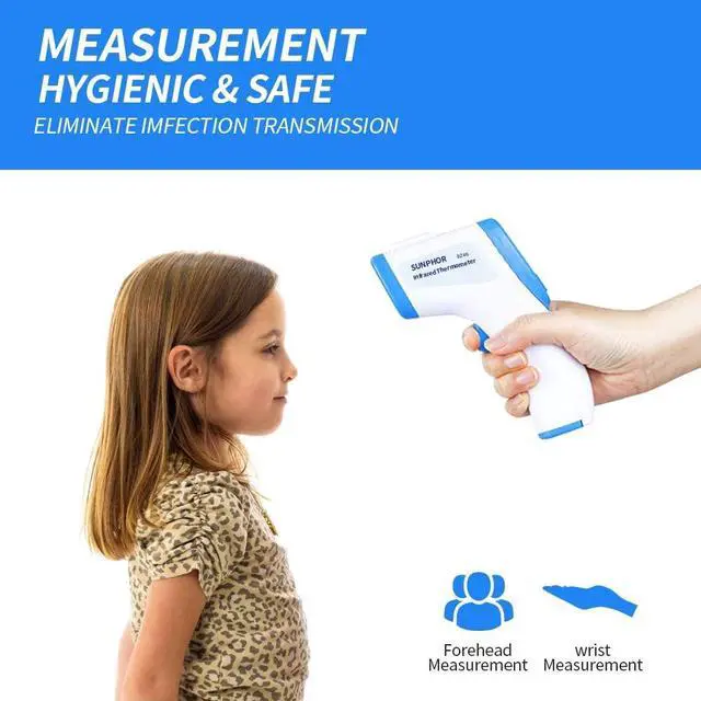 Sunphor The Forehead Thermometer using infrared technology swiftly measures body temperature. Simply aim the probe 1 to 5 cm away from the forehead for fast and accurate results. Suitable for adults and kids its convenient size (160mm x 100mm x 40mm) ensures easy use. Powered by 2 AAA batteries (not included) this thermometer boasts a user-friendly display technology for reliable temperature readings. A must-have for quick and precise temperature checks at home.