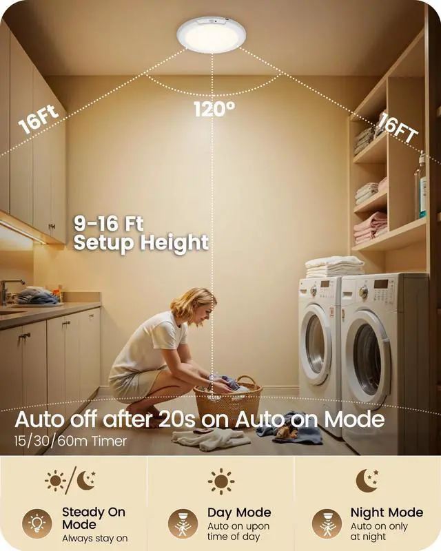 The motion light takes up less space while maintaining enough illuminated area, providing the perfect lighting solution for low-ceiling areas.