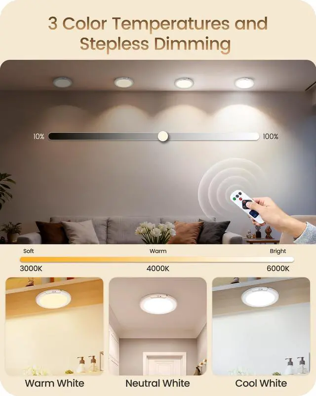 The frosted light surface makes the battery powered ceiling light bright yet soft,ensuring that you can easily find items without straining your eyes.