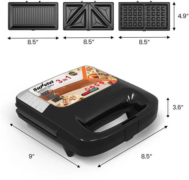 | Title | SUNVIVIPRO 3 in 1 Waffle, Grill & Sandwich Maker, Sandwich Maker Panini Press Waffle Iron Set with Removable Non-Stick Plates & Indicator Lights, Panini Press Grill for Breakfast, 800W, Silver |