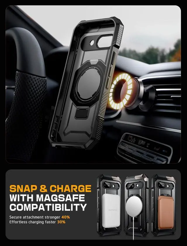 Equipped with an N52 powerful magnet, delivering a magnetic force of up to 1500g (surpassing the industry average of 700g-1200g), ensuring seamless compatibility with a range of MagSafe accessories (magnetic car mount, MagSafe wireless charger, magnetic card holder, desktop magnetic wireless charging stand).