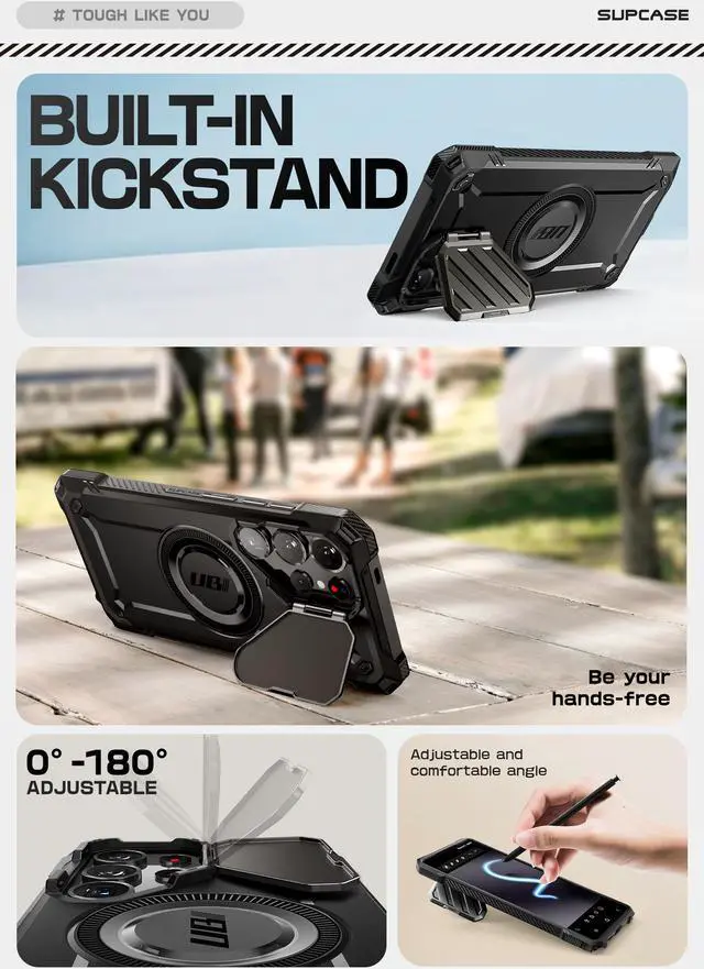 [Multi-function Camera Cover]: The built-in zinc alloy anodized camera cover protects lens from tough surfaces, drops and falls. Camera cover also doubles as a kickstand with multiple viewing angles.