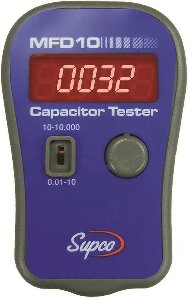 Here is some additional information about Supco Digital Capacitor Tester, 2 Range. Capacitance Range: 0.01 to 9999 uF, Includes: Auto-Ranging, Rubber Grips, 12" Magnetic Leads, Alligator Clips, Carrying Case, Manual.. This item has been restricted from sale in the following state(s): []