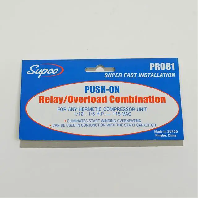 Replaces refrigerator compressor relay and overload units from 1/12 through 1/5 hp.