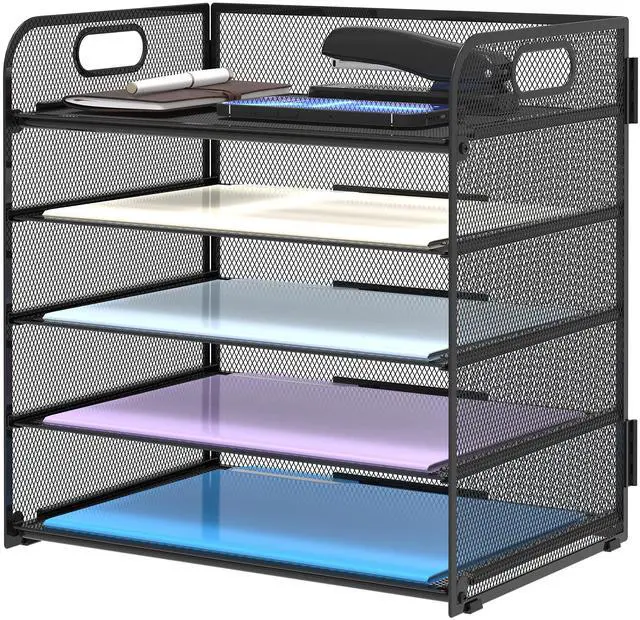 This paper organizer for desk stable structure is made of black wire mesh structure, and good quality, not easy to rust.