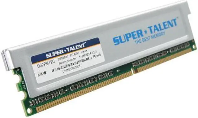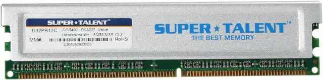 Super Talent Desktop DDR SDRAMSuper Talent Desktop DDR SDRAM is built with high-quality components and complies with industry standards. Ideal for system integrators and DIYers alike, Super Talent desktop memory offers guaranteed compatibility for upgrades.