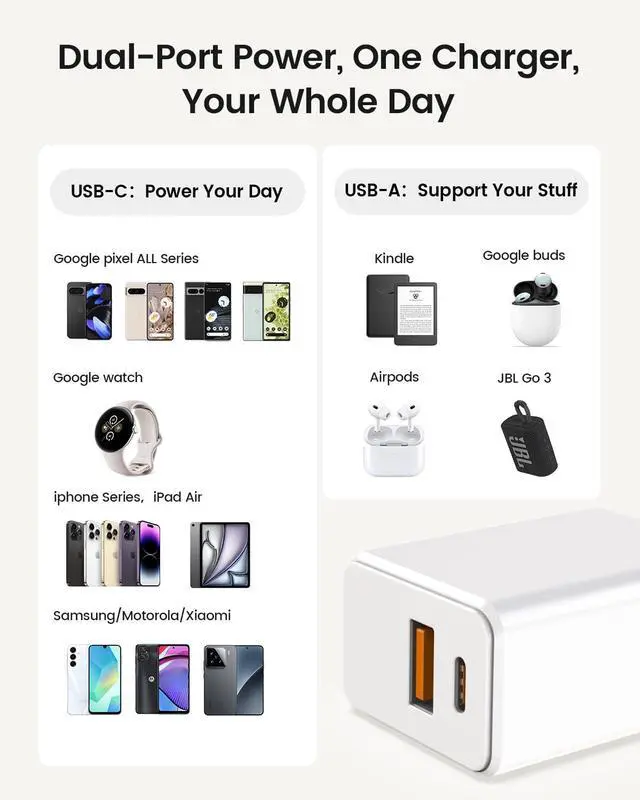 ![]() 20W USB-C Charger | ![]() 20W USB-C Charger | ![]() 7.5Ft USB-C to C Charging Cable | ![]() 30W USB-C Charger | |