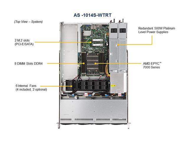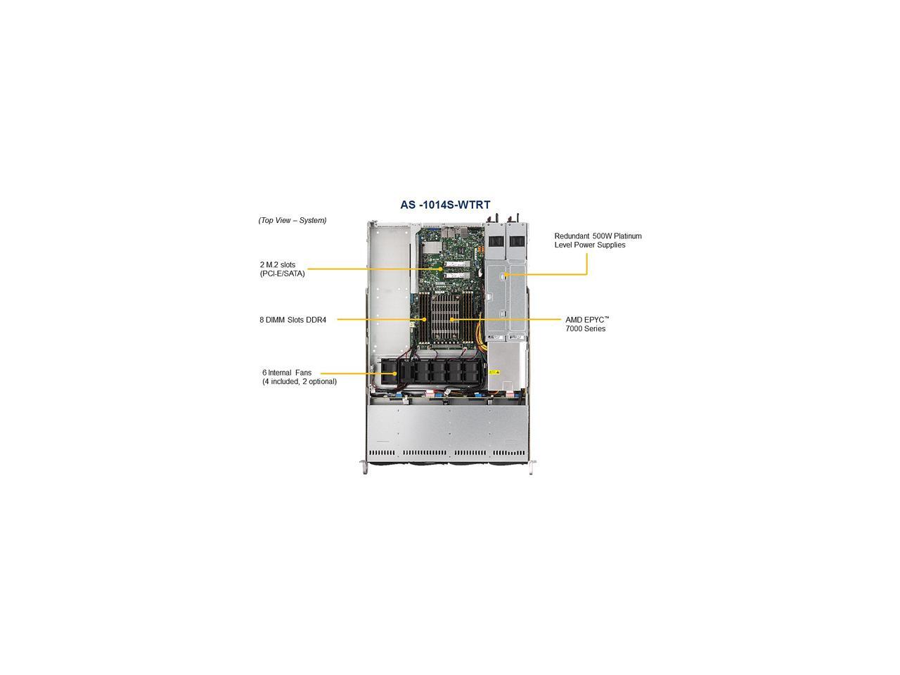 SUPERMICRO AS-1014S-WTRT 1U Rackmount Server Barebone AMD Rome 1U 500w Server with 8x DIMMs, 3x PCI-E 4.0, 4x 3.5" Hotswappable, 2x 10GbE NIC