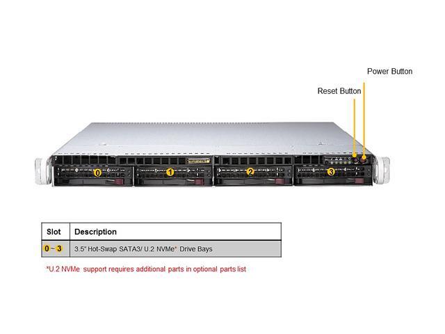 - Drive: 4 Hot-Swap 3.5" SATA3 (Optional 4 U.2 NVMe)