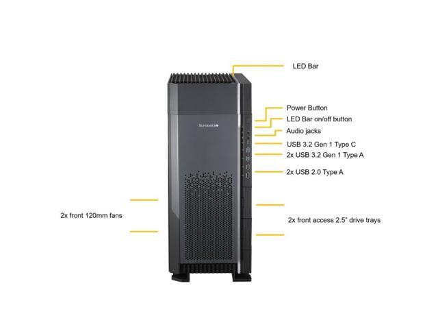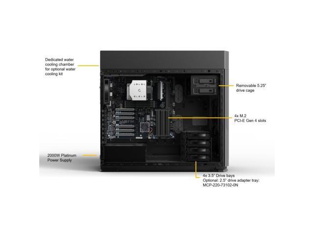 - 4 fixed internal 3.5"/2.5" SATA drive bays, 2 fixed front 2.5" SATA drive bays, 4 M.2