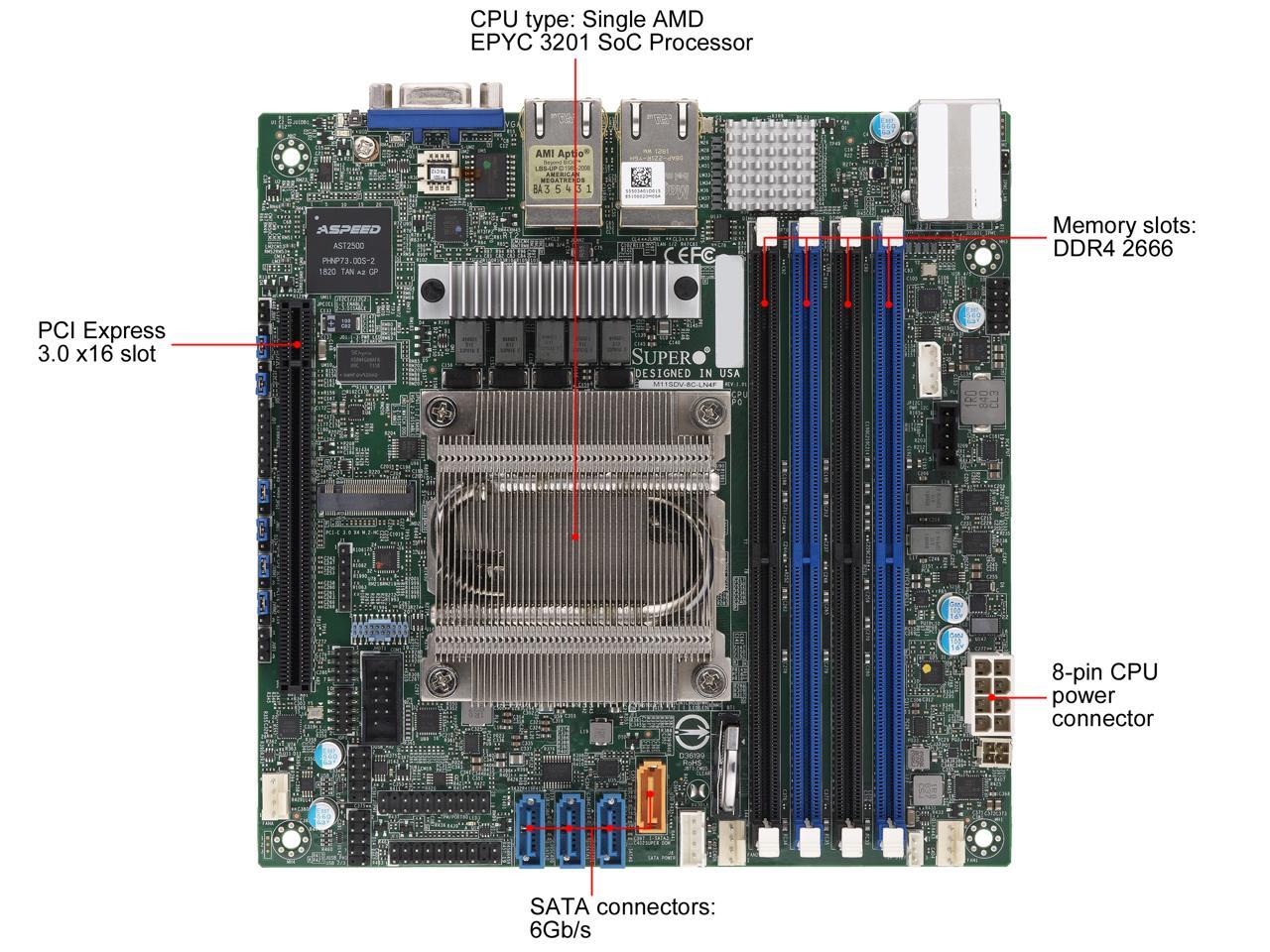 - AMD EPYC 3201 SoC Processor, 8 Core / 8 Thread, 30W