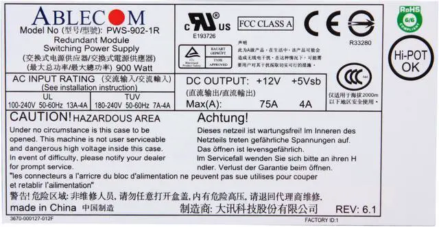 Part Number : Pws-902-1RManufacturer: SupermicroWattage : 900 WattType : Redundant