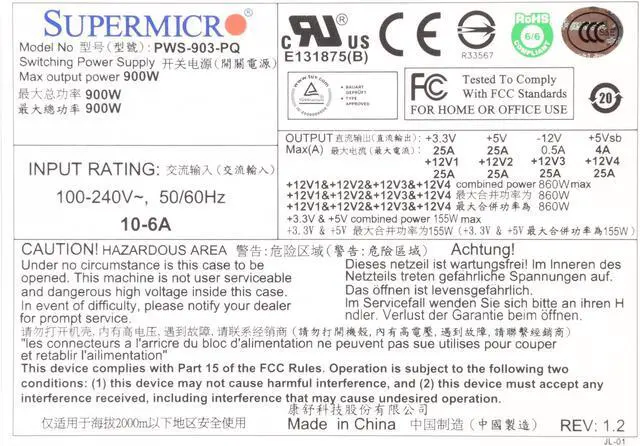 SuperMicro PWS-903-PQ 900W Single Server Power Supply