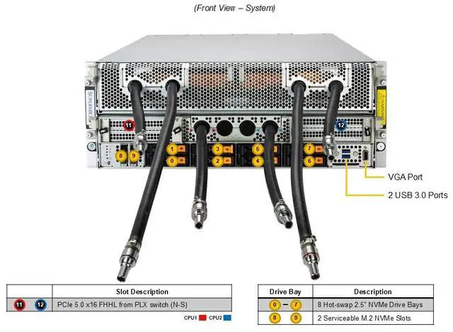 | Expansion Bays | 8 front hot-swap 2.5" NVMe drive bays 2 M.2 NVMe slots (M-key) |