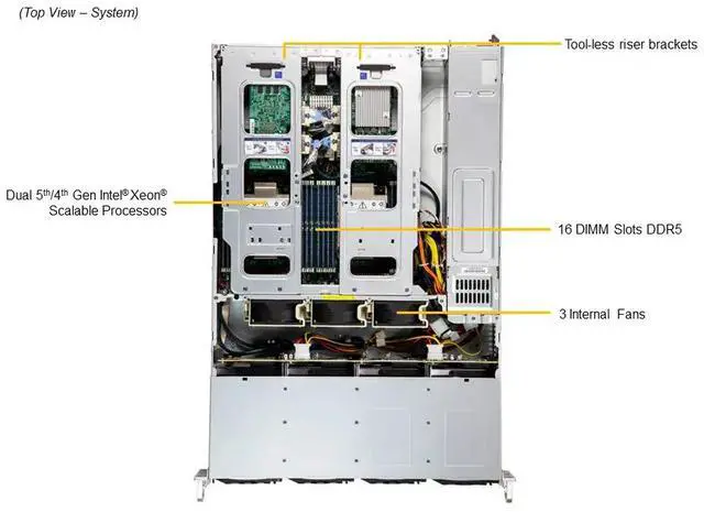| Expansion Slots | 4 PCIe 5.0 x8 (in x16) FHFL double-width slots 2 PCIe 5.0 x16 FHHL slots 2 PCIe 5.0 x16 AIOM slots (OCP 3.0 compatible) |