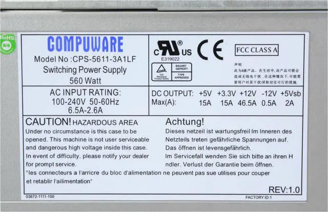 | Max. Power | 650W (1 + 1) Redundant AC power supply w/ PFC |