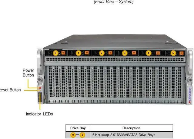 Hot-Swap Bays 6 x 2.5" hot-swap NVMe/SATA drive bays (6 x 2.5" NVMe hybrid)