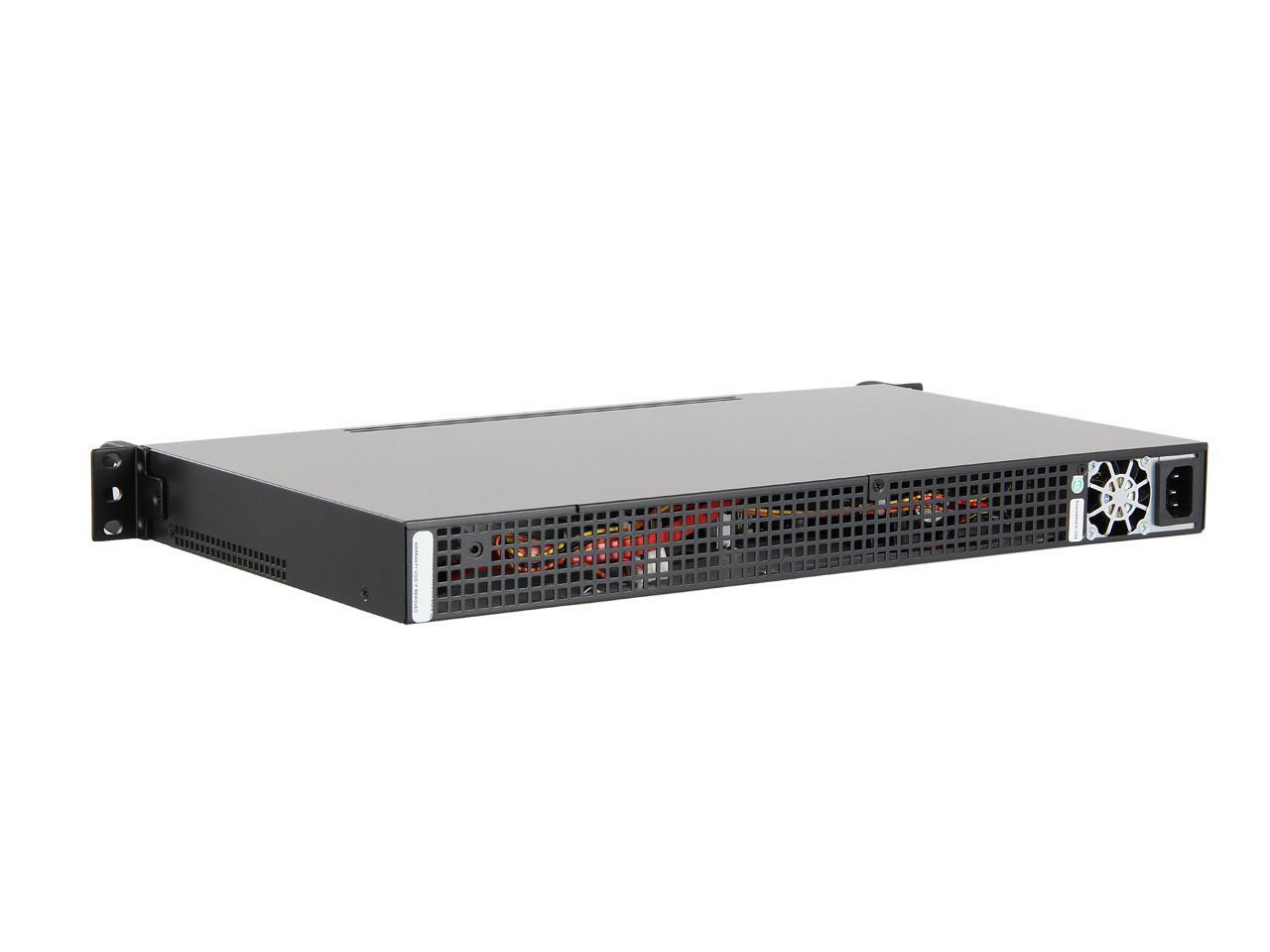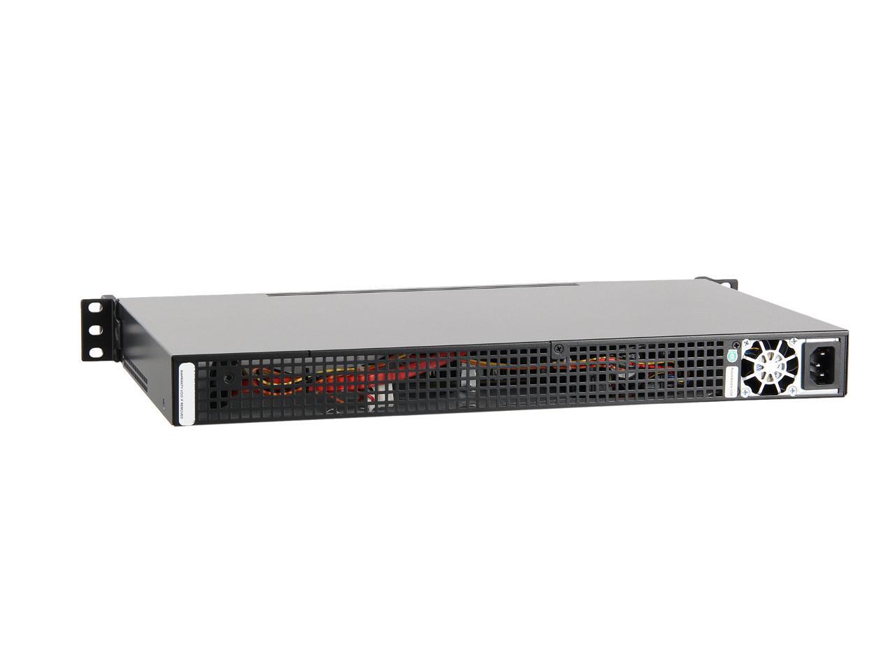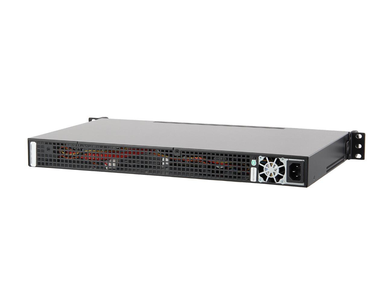 With quad Gigabit Ethernet ports, this 1U server barebone system is ideal for file sharing, gateway, firewall and router applications. It incorporates a mini-ITX motherboard with a soldered-down Intel Atom C2758 processor (eight cores), and supports up to 64GB DDR3 ECC SO-DIMM RAM via four memory slots. It also offers space for 3.5" & 2.5" drives, and has a PCI-E 2.0 x8 slot. The pre-installed 200W power supply is 80 PLUS Gold certified and runs with whisper-level noise, delivering the benefit of lower energy cost and less noise annoyance, which you would value to a great extent in the 24x7 operation.