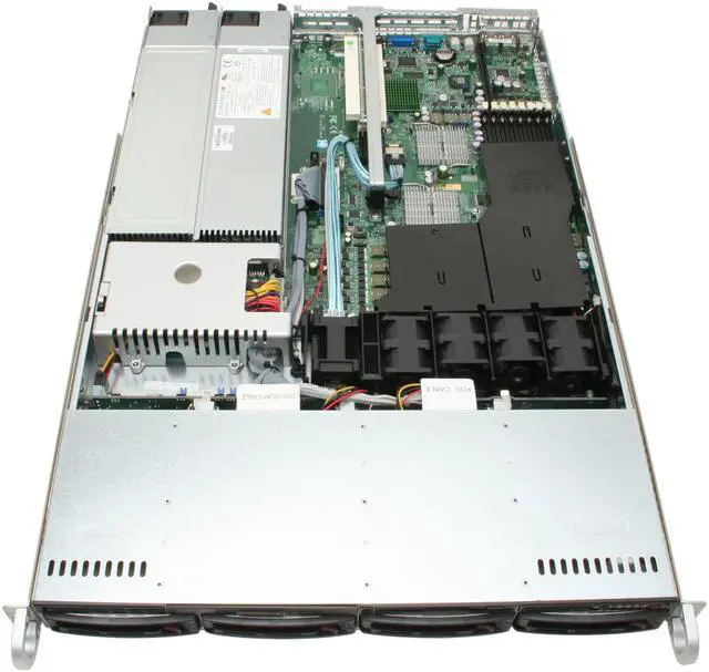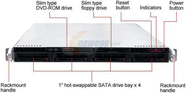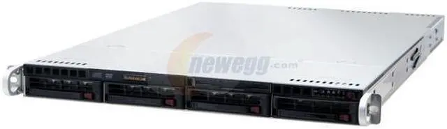 Supermicro's SYS-6015P-TRB 1U barebone server is a big bang in a small package. The front panel has four hot swap drive bays, a slim DVD–ROM drive and a bay for a slim floppy drive. On the back there is one regular height and one compact expansion bay. Redundant 700W AC power supply provide redundant power to the server.