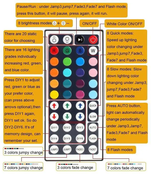 Package included: 1x 44Keys IR Remote Controller for RGB LED Strip Lights (Only the RGB Remote,No Power Supply included)