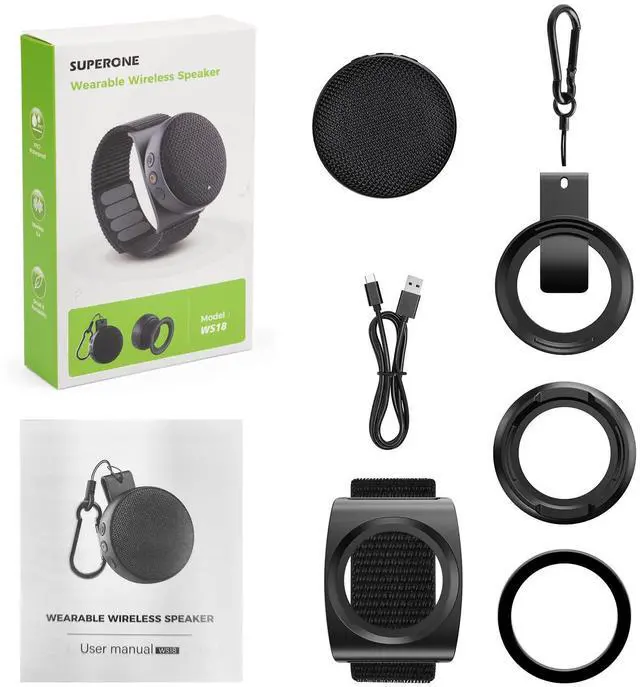 | Included Components | Detachable Clip with Hook*1, Detachable MagSafe Stand with Metal Ring * 1, Detachable Wristband*1, USB-C Charging Cable * 1, Wearable Bluetooth Speaker * 1 |