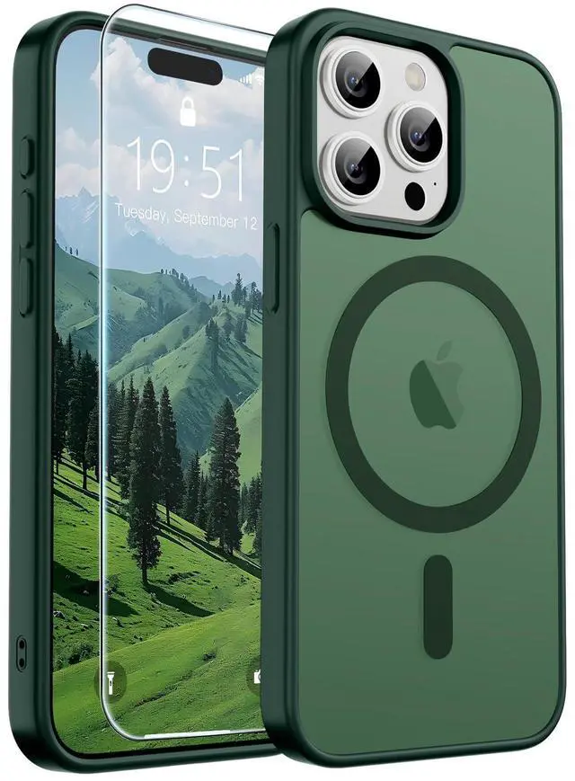 Magnetic for iPhone 15 Pro Max Case (Compatible with MagSafe) (Military Grade Drop Protection) Slim Translucent Matte Shockproof with Anti-Fingerprint Phone Case, Forest Green