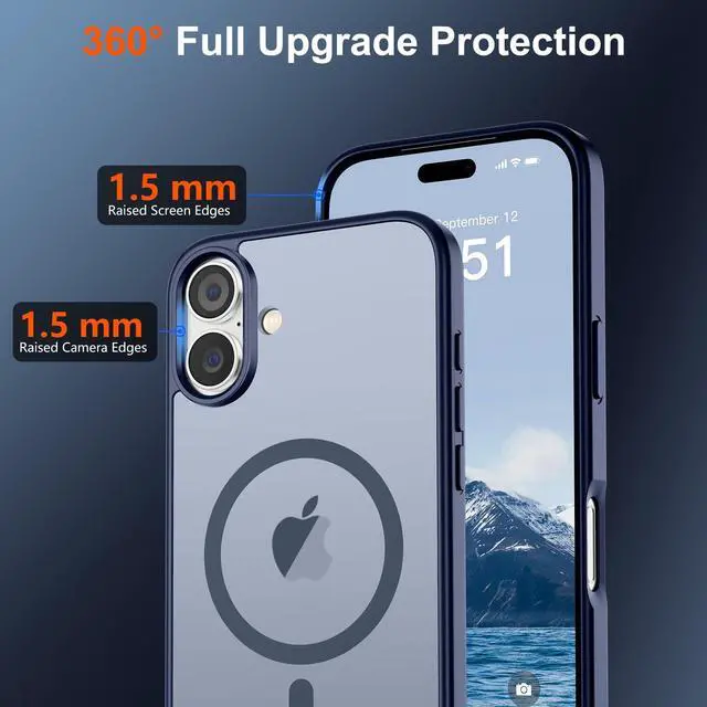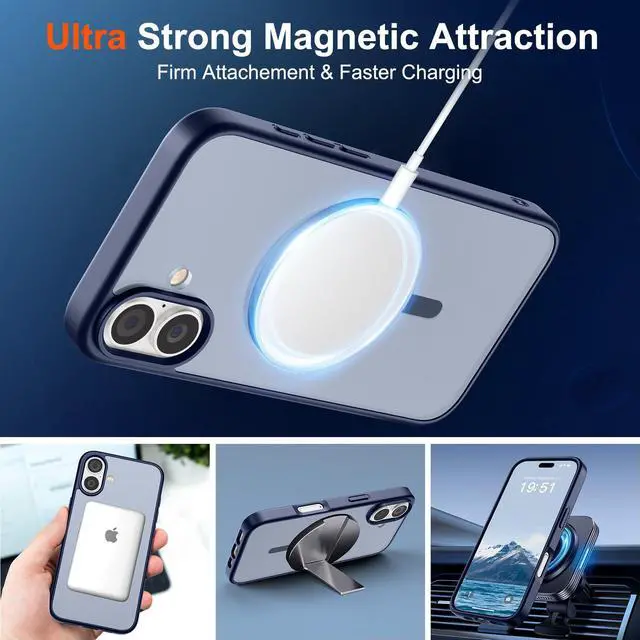 Magnetic for iPhone 17 Case (Compatible with MagSafe)(Military Grade Drop Protection) Translucent Matte Shockproof with Anti-Fingerprint Phone Cover 2025,Navy Blue