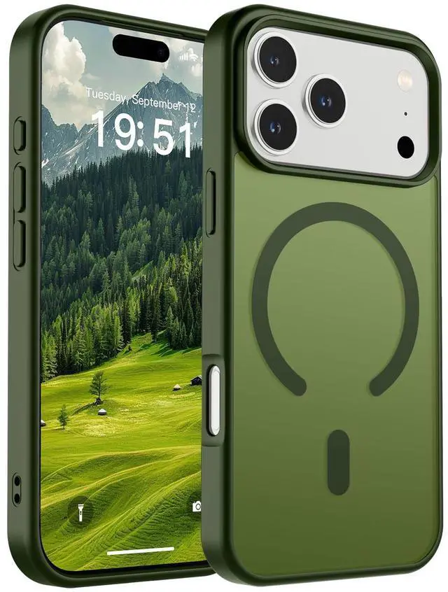 Magnetic for iPhone 17 Pro Case (Compatible with MagSafe)(Military Grade Drop Protection) Translucent Matte Shockproof with Anti-Fingerprint Phone Cover 2025,Cangling Green