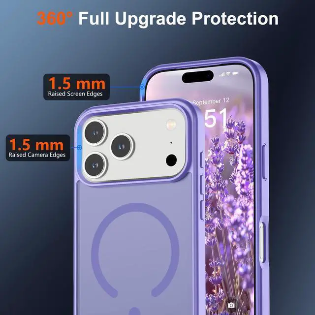 KEHIPI Magnetic for iPhone 17 Pro Case (Compatible with MagSafe) (Military Grade Drop Protection) Translucent Matte Shockproof with Anti-Fingerprint Phone Cover 2025, Purple