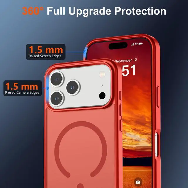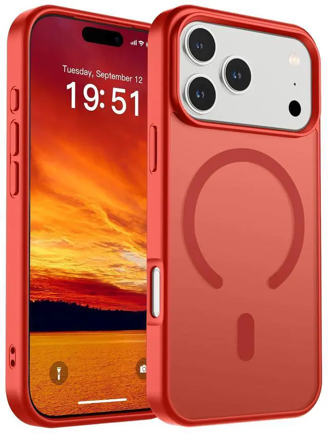 Magnetic for iPhone 17 Pro Case (Compatible with MagSafe)(Military Grade Drop Protection) Translucent Matte Shockproof with Anti-Fingerprint Phone Cover 2025,Red