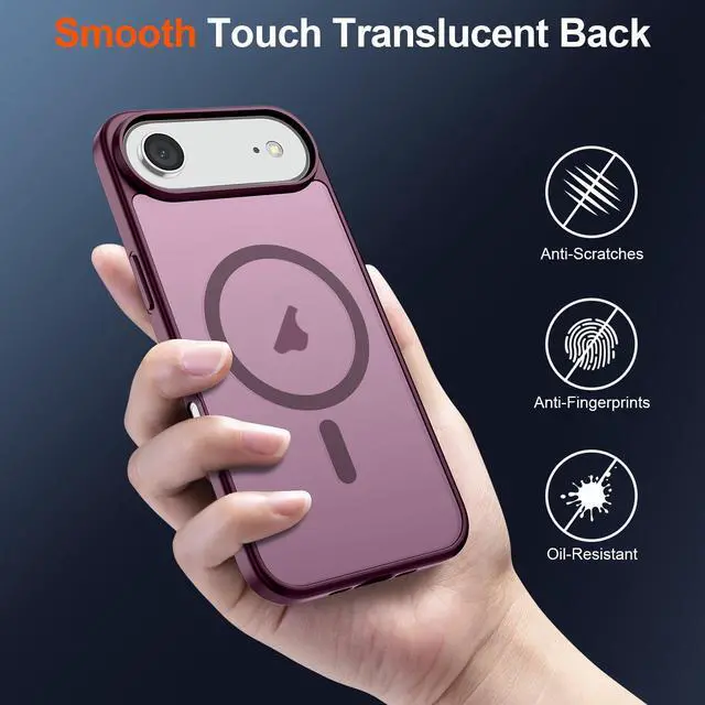 Magnetic for iPhone Air Case (Compatible with MagSafe)(Military Grade Drop Protection) Slim Translucent Matte Shockproof with Anti-Fingerprint Phone Cover 2025,Wine Red