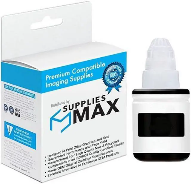 SuppliesMAX Refill Ink Bottle compatible replacement for Canon 1595C001. Yields up to 6000 pages at 5% coverage. Premium ink delivers vibrant color and sharp text for photos, presentations, and everyday documents. Engineered for reliable performance, long-lasting results, and seamless installation in supported 110V U.S.-based printers.