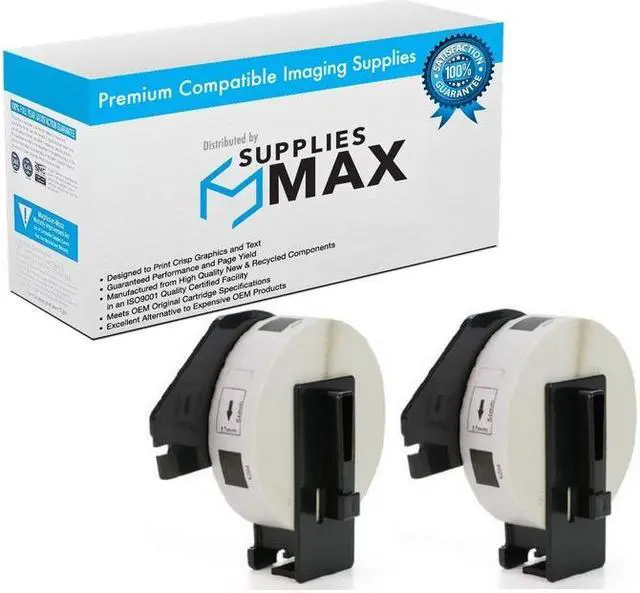 SuppliesMAX Compatible Brand Label Tape (2/PK) ; Compatible With: Brother QL-500 / Brother QL-550 / Brother QL-570 / Brother QL-580N / Brother QL-650TD / Brother QL-700 / Brother QL-710W / Brother QL-QL720NW / Brother QL-800 / Brother QL-810W / Brother QL-820NWB / Brother QL-1050 / Brother QL-1060N / Brother QL-1110NWB.