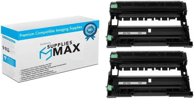 SuppliesMAX Drum Unit compatible replacement for Brother DR-730_2PK. Yields up to 12000 pages at 5% coverage for consistent, high-volume printing. Built with quality components to deliver crisp black output, clear color contrast, and reliable performance for everyday business and personal use. Designed for long-lasting results and easy installation in supported 110V printers sold in the U.S.