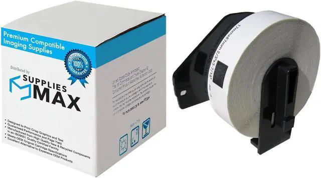 SuppliesMAX Compatible Brand Label Tape ; Compatible With: Brother QL-500 / Brother QL-550 / Brother QL-570 / Brother QL-580N / Brother QL-650TD / Brother QL-700 / Brother QL-710W / Brother QL-QL720NW / Brother QL-800 / Brother QL-810W / Brother QL-820NWB / Brother QL-1050 / Brother QL-1060N / Brother QL-1110NWB.