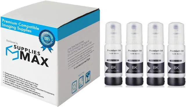 SuppliesMAX Compatible Brand Refill Ink Bottle (4/PK-5000 Page Yield) for Epson EcoTank ET- 7700 / Epson EcoTank ET- 7750 / Epson Expression Premium ET-7700 / Epson Expression Premium ET-7750 / Epson Expression ET-7700 EcoTank / Epson Expression Premium ET-7750