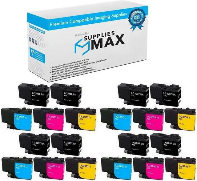 SuppliesMAX Super High Yield Inkjet Combo Pack compatible replacement for Brother LC-3037-8BK4CMY. Yields up to 3000 pages at 5% coverage. Premium ink delivers vibrant color and sharp text for photos, presentations, and everyday documents. Engineered for reliable performance, long-lasting results, and seamless installation in supported 110V U.S.-based printers.