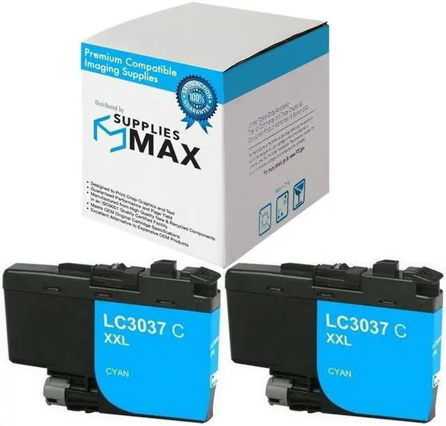 SuppliesMAX Super High Yield Inkjet compatible replacement for Brother LC-3037C_2PK. Yields up to 1500 pages at 5% coverage. Premium ink delivers vibrant color and sharp text for photos, presentations, and everyday documents. Engineered for reliable performance, long-lasting results, and seamless installation in supported 110V U.S.-based printers.