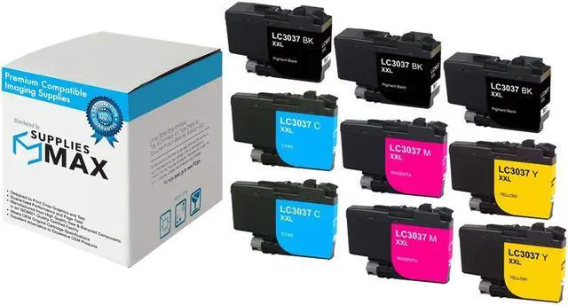 SuppliesMAX Super High Yield Inkjet Combo Pack compatible replacement for Brother LC-3037VALBP_3PK. Yields up to 3000 pages at 5% coverage. Premium ink delivers vibrant color and sharp text for photos, presentations, and everyday documents. Engineered for reliable performance, long-lasting results, and seamless installation in supported 110V U.S.-based printers.