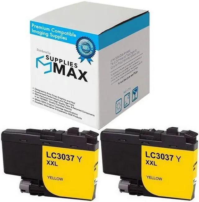 SuppliesMAX Super High Yield Inkjet compatible replacement for Brother LC-3037Y_2PK. Yields up to 1500 pages at 5% coverage. Premium ink delivers vibrant color and sharp text for photos, presentations, and everyday documents. Engineered for reliable performance, long-lasting results, and seamless installation in supported 110V U.S.-based printers.