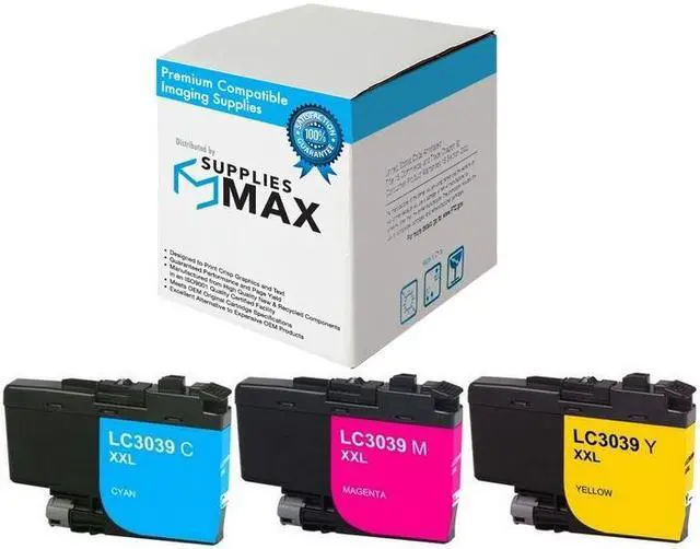 SuppliesMAX Ultra High Yield Inkjet Combo Pack compatible replacement for Brother LC-30393PKS. Yields up to 6000 pages at 5% coverage. Premium ink delivers vibrant color and sharp text for photos, presentations, and everyday documents. Engineered for reliable performance, long-lasting results, and seamless installation in supported 110V U.S.-based printers.