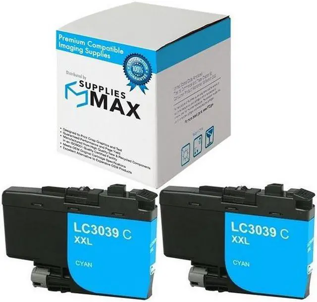 SuppliesMAX Ultra High Yield Inkjet compatible replacement for Brother LC-3039C_2PK. Yields up to 5000 pages at 5% coverage. Premium ink delivers vibrant color and sharp text for photos, presentations, and everyday documents. Engineered for reliable performance, long-lasting results, and seamless installation in supported 110V U.S.-based printers.