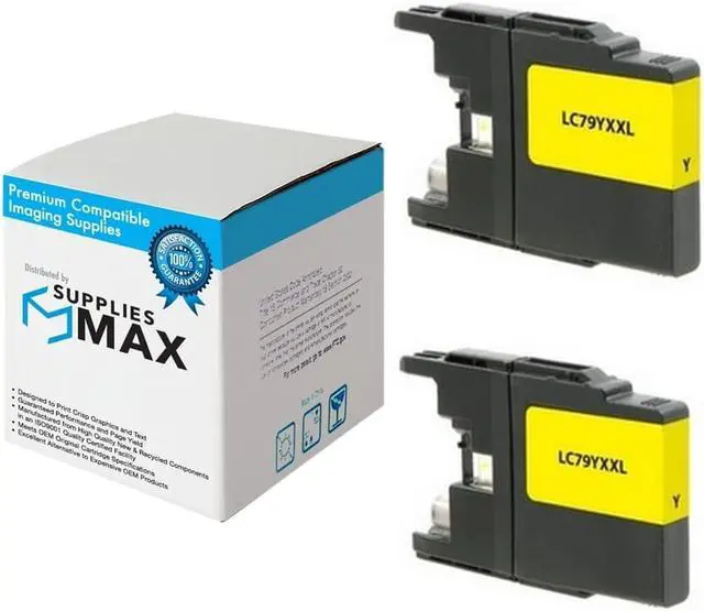 SuppliesMAX High Yield Inkjet compatible replacement for Brother LC-79Y_2PK. Yields up to 1200 pages at 5% coverage. Premium ink delivers vibrant color and sharp text for photos, presentations, and everyday documents. Engineered for reliable performance, long-lasting results, and seamless installation in supported 110V U.S.-based printers.