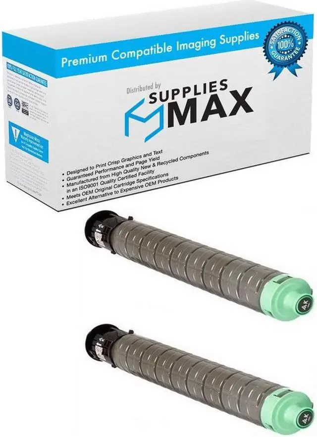 SuppliesMAX Toner Cartridge compatible replacement for Savin 821255_2PK. Yields up to 43000 pages at 5% coverage for consistent, high-volume printing. Built with quality components to deliver crisp black output, clear color contrast, and reliable performance for everyday business and personal use. Designed for long-lasting results and easy installation in supported 110V printers sold in the U.S.