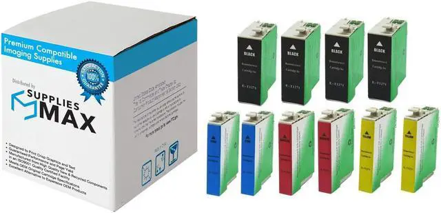 SuppliesMAX Inkjet Combo Pack compatible replacement for Epson T127120-4B2CS. Yields up to 945 pages at 5% coverage. Premium ink delivers vibrant color and sharp text for photos, presentations, and everyday documents. Engineered for reliable performance, long-lasting results, and seamless installation in supported 110V U.S.-based printers.