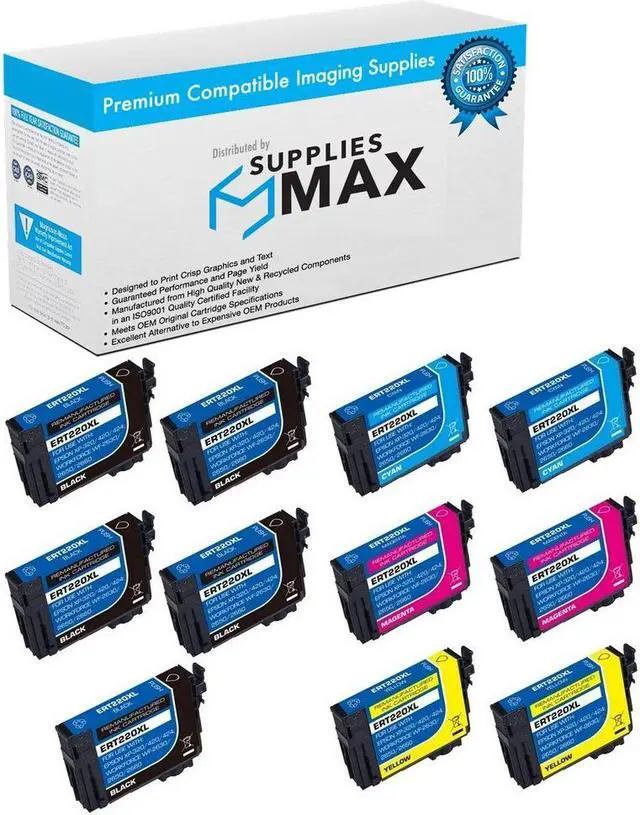 SuppliesMAX High Yield Inkjet Combo Pack compatible replacement for Epson T220XL120-5B2CS. Yields up to 500 pages at 5% coverage. Premium ink delivers vibrant color and sharp text for photos, presentations, and everyday documents. Engineered for reliable performance, long-lasting results, and seamless installation in supported 110V U.S.-based printers.
