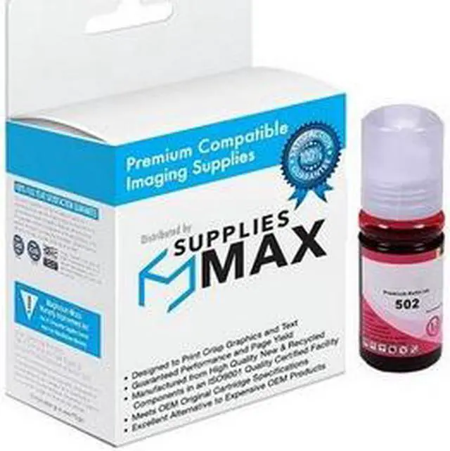 SuppliesMAX Refill Ink Bottle compatible replacement for Epson T502320-S. Yields up to 6000 pages at 5% coverage. Premium ink delivers vibrant color and sharp text for photos, presentations, and everyday documents. Engineered for reliable performance, long-lasting results, and seamless installation in supported 110V U.S.-based printers.