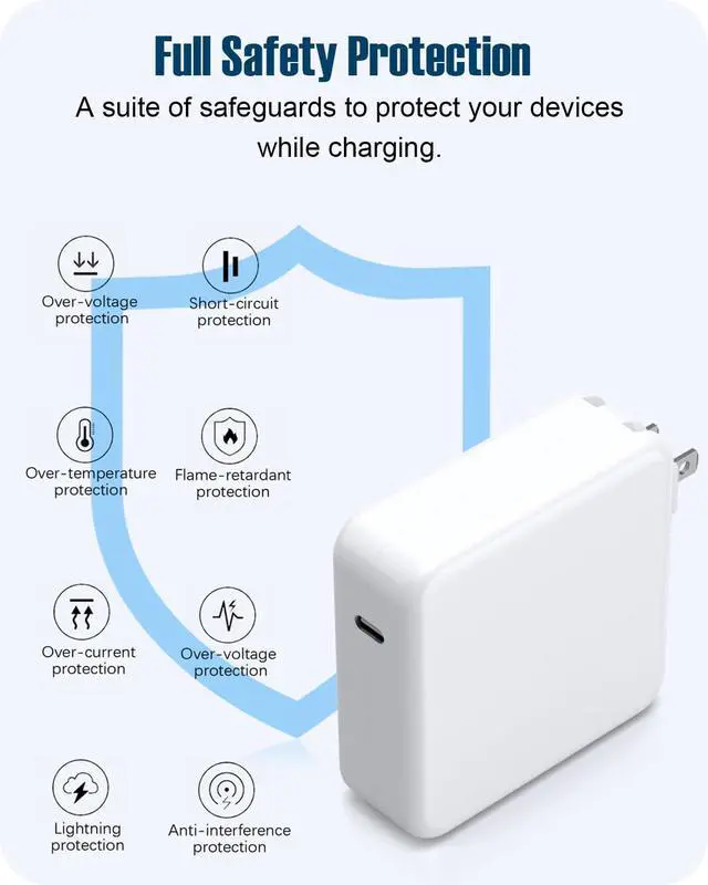Built-in smart chip safeguards to protect your laptop or cellphone from overvoltage, short-circuit, overheating and overcurrent, charging faster and safer.