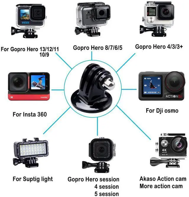Comptible For gopro hero 13/hero 12/hero 11/hero 10/hero 9/hero 8/hero 7/hero 6/hero 5/hero 4/hero 3 hero 3+ hero 2/hero 1/Gopro max/Gopro Fusion/and Akaso/ Dji osmo/insta 360/more action cameras.